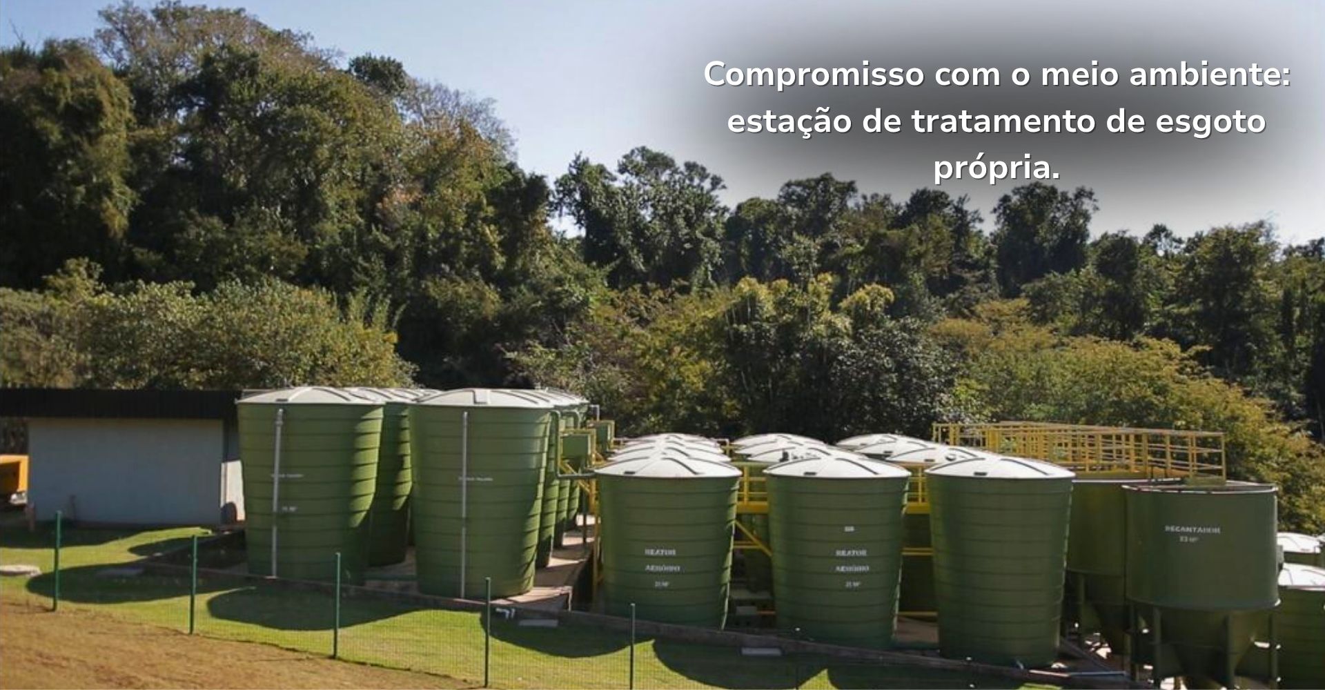 Nossa rede elétrica, água e fibra ótica, são subterrâneas. Contamos também com uma central de tratamento de esgoto própria.